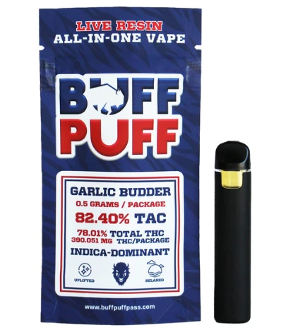 BUFF PUFF’s Live Resin All-in-One Vapes harness the purity of Live Resin extracted exclusively from our fresh-frozen cannabis, ensuring a pure experience free from synthetic terpenes, distillate, or additives. The sleek, inhale-activated device features a ceramic heating element for smooth draws and USB-C rechargeability for added convenience.