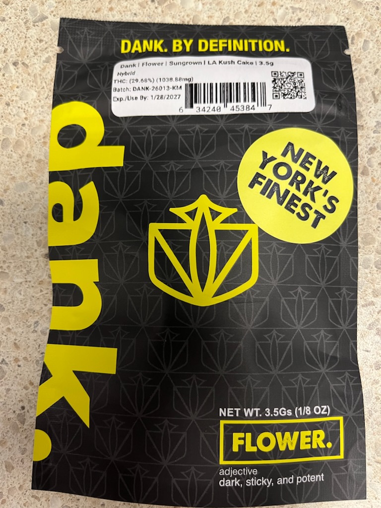 La Kush Cake is an indica-dominant strain that smells like vanilla and has an earthy peppermint taste. It’s an easy, smooth hitter, and effects take a while to come on. This is a beautiful flower, with green and purple buds covered in frosty trichomes. It’s great for relaxing and winding down at the end of the night without much else to do