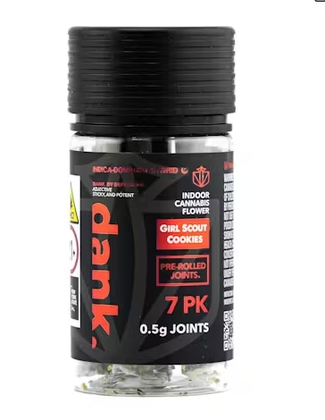 Enjoy the premium quality of our DANK Pre-Roll 7 Pack featuring GSC, a top tier hybrid strain. These pre-rolls offer happy, hungry, and tingly effects, making them ideal for various occasions. With a pungent, dessert-like aroma and a sweet, spicy flavor profile, GSC delivers a satisfying experience. Each joint ensures a rich, enjoyable high. Whether you're unwinding or socializing, this 7-pack provides consistent quality and pleasure.