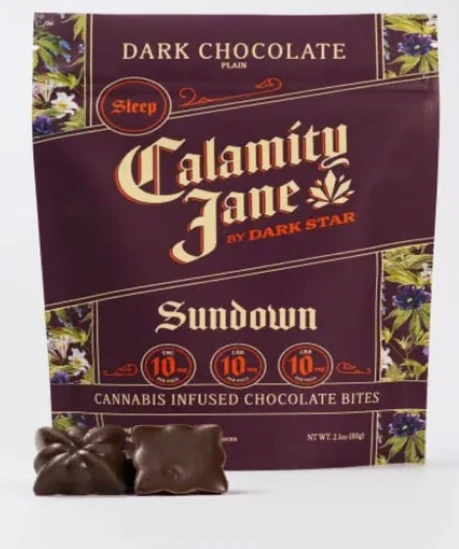 (Ten pieces, 10mg THC each) Howdy, Calamity Jane here, and I reckon you’ll take kindly to my artisanal chocolate edibles. Our small batch bites are crafted with custom blends of THC, CBG, CBD, and CBN to align and amplify your mood — or point it toward a new horizon. Whether you're a seasoned connoisseur or a curious newcomer, saddle up with Calamity Jane, and ride high.