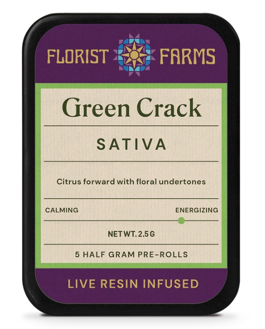 These half gram prerolls are packed with whole flower and infused with live resin and pure THC-A Diamonds for an extra potent, full-bodied high. They come in a sleek, pocket-sized tin, and they're actually some of the best-selling pre-rolls in New York! Definitely a go-to for experienced smokers or anyone wanting a more powerful hit. 5 prerolls, .5g each