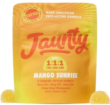Let’s get Jaunty. These fast-acting gummies provide just the right amount of boost thanks to the carefully crafted blend of THC, CBG, CBD, and sativa effects-based terpenes. Experience a refreshing wave of energy and creativity that helps you stay focused and uplifted throughout the day.